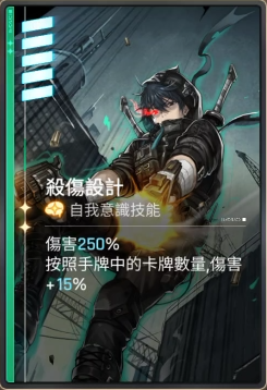 杀伤策划的伤害量+50%,按照手牌中卡牌数量所获得的伤害量加成,由+15%变更为+25%
