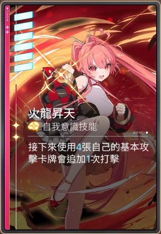 火龙升天接下来使用的自身基本攻击卡牌原为4张会发动1次额外攻击,变更为6张